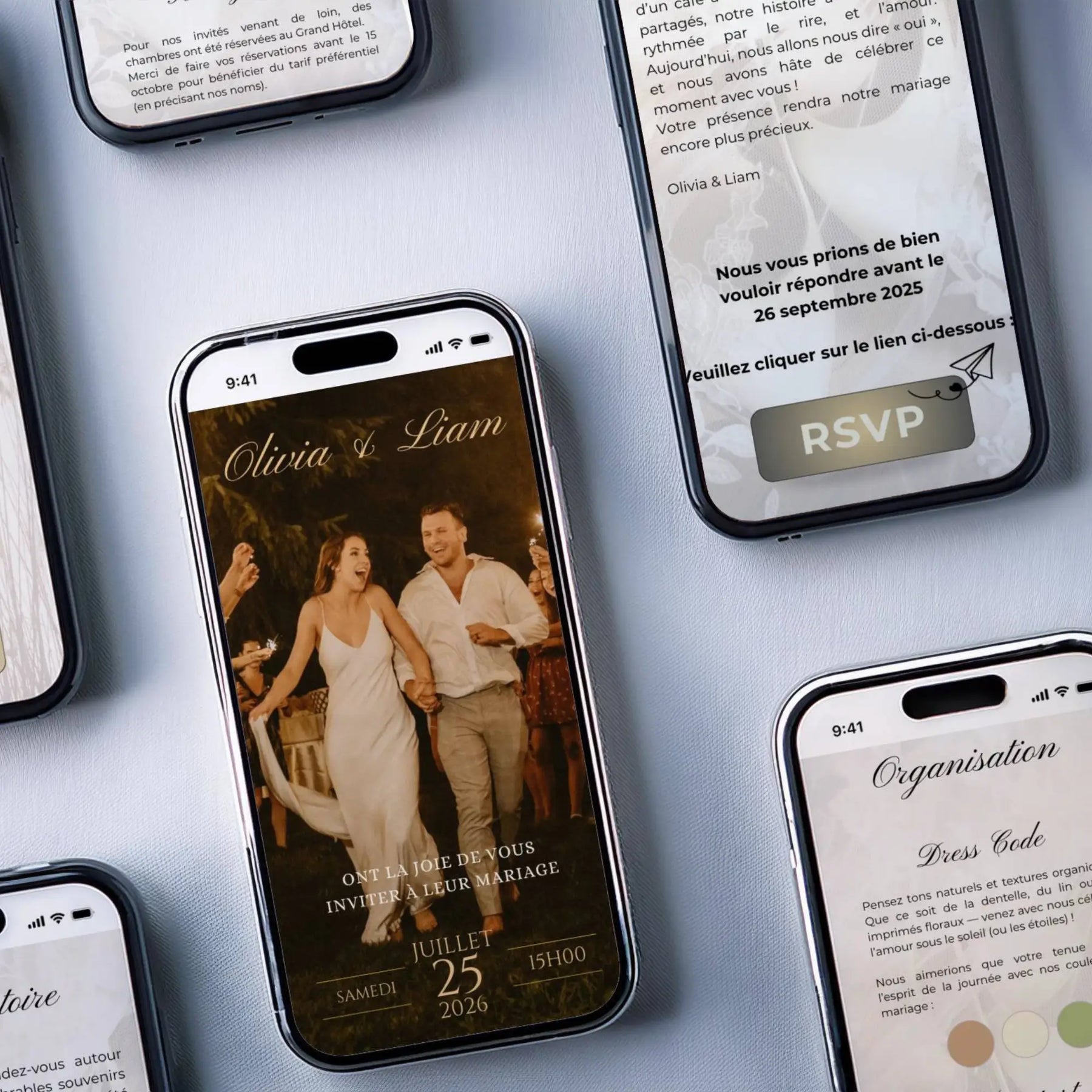Vos invités accèdent simplement au site via le lien personnalisé que vous leur partagerez (mail, SMS, WhatsApp...).