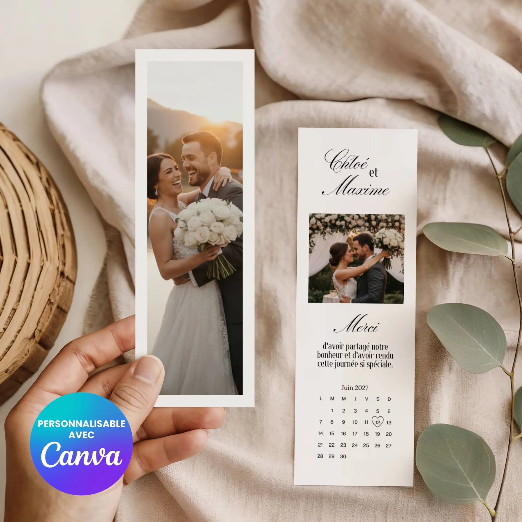 Marque-page Remerciement Mariage | Modèle Canva à personnaliser